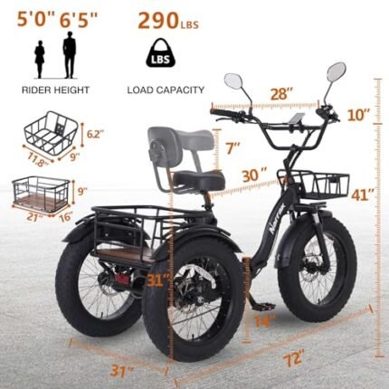 MOONCOOL Electric Tricycle for Adults, 20″ x 4″ Fat Tire Electric Trike, 48V 500W Motorized Electric Bicycle Bikes, 3 Wheels 7 Speed Ebike with Removable Battery, Aluminum Frame & Large Basket
