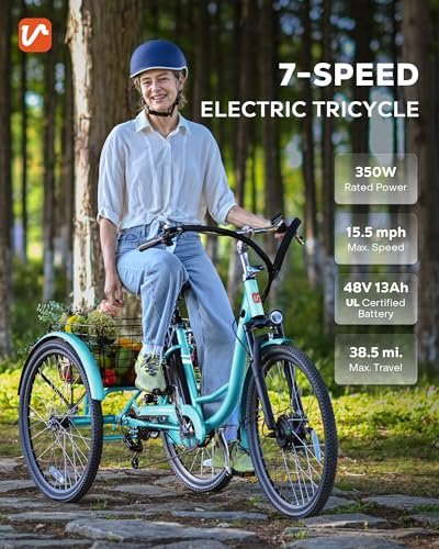 Viribus Electric Tricycle for Adults, 350W Electric Trike 7 Speed with UL 36V 13Ah Battery, 3 Wheel Electric Bikes for Adults with Dual Chains, E Trikes for Women Men Seniors, 330 lb. 24 26 inch