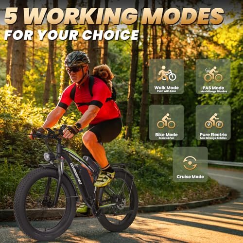 1000W Electric Bike for Adults Electric Bicycles for Men Women 26″ Fat Tire Electric Mountain Bike 48V 34MPH 17.5AH 840WH Battery 70 Miles e Bike 21-Speed Gears Ebike UL Certified