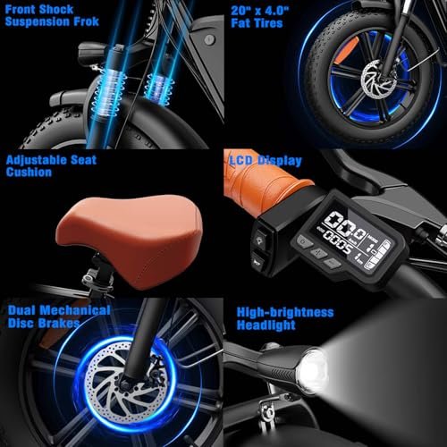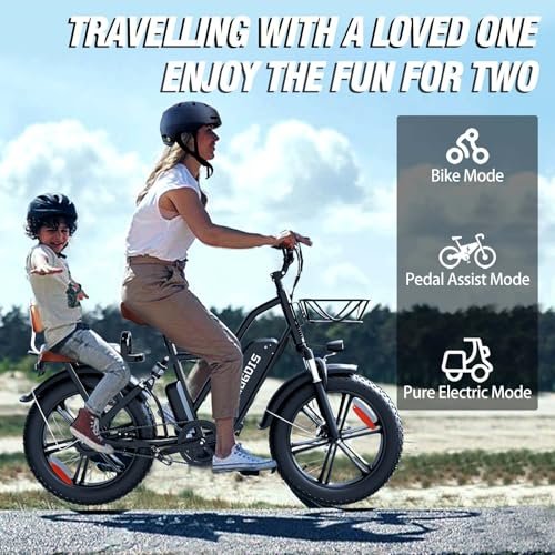 • Attractive Vintage Design : 2 seater electric bike boasts a glossy black high-carbon steel frame and vintage brown accents that will have you turning heads from the moment you see it. The large-capacity basket, comfortable saddle and snug backrest combine practicality with style, making this fat tire ebike the great choice for your next adventure