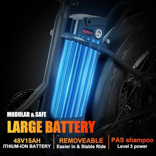20″ Folding Electric Bike,Peak 1200W Fat Tire Ebike 7 Speed Gear with Removable 48V15AH Lithium Battery and Multi-Function Display (Black)