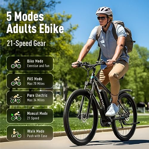 | Special Feature | Digital Display, 34MPH Max Speed, Thumb Throttle, 21-Speed Gear, BMS 840WH Lithium Battery, 5 Modes, Adjustable Seat, Dual Disc Brake, Front Suspension, Quick Release Front Wheel, Rechargeable Lockable Battery, Lockout ForkDigital Display, 34MPH Max Speed, Thumb Throttle, 21-Speed Gear, BMS 840WH Li… See more |