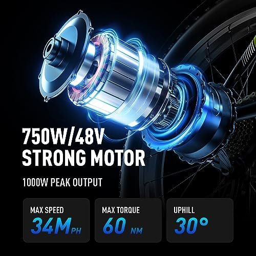 29” Electric Bike for Adults 48V 17.5AH 840WH Battery, 750W Peak 1000W 34MPH Electric Mountain Bike, 70 Miles Ebike 21-Speed Gears, IP7 Waterproof Electric Bicycle E Bike for Commuter