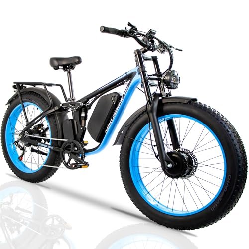 3000W Peak Dual Motor Electric Bike for Adults,2000W 48V 22Ah Battery E-Bicycle,35MPH & 60Miles, 26”Fat Tire Off Road Mountain All Terrain Commuter E-Bike,Full Suspension,Hydraulic Disc Brake Ebike