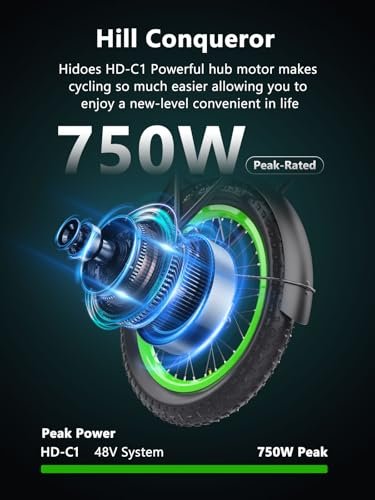 • 750W High-Speed Brushless Motor Electric Bicycle: Hidoes HD-C1 electric bike is powered by 750W brushless motor with max speed of 25MPH. Equipped with 20″ tires and removable battery, If in Pedal-Assist mode, it can travel up to more than 22miles.