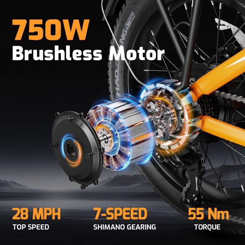 A2 Folding Electric Bike, 20” Fat Tire Electric Bike with 750W Motor, 48V Removable Battery, 28MPH Max Speed, 45 Mile Range, Step-Through Frame and 7-Speed,2PCS