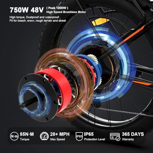 aostirmotor 28MPH Full Suspension Electric Bikes for Adults 750W E-Bike 48V 15AH Removable Battery Electric Mountain Bike 26×4 Inch Fat Tire Electric Snow Bicycles Shimano 7 Speed