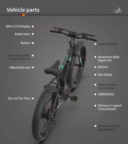 aostirmotor 500W Electric Bike for Adults 26″×4″ Fat Tire Electric Bike 36V 13AH Removable Lithium Battery Adult Electric Bicycles, 28MPH E Bike for Adults, Shimano 7 Speed Electric Mountain Bike