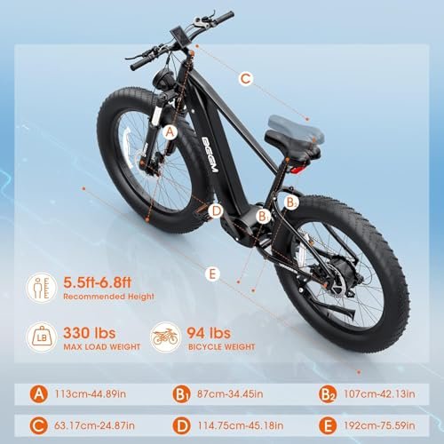 • 【Shock-Absorbing Big Fat Tire】Electric e-bike is equipped with 26″ x 4.0 widening and thickening fat tires, which are not only anti-slip and anti-puncture but also enable the ebikes to adapt to various roads such as cities, beaches, mountain roads, and snow, and ride without fear. The dual-suspension front fork provides excellent cushioning, and the dual-disc brakes can quickly stop the fat tire electric bike to ensure the safety of riding.