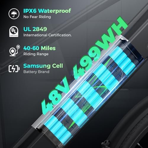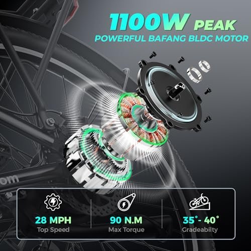 C2 Electric Bike Adults, 1100W Peak BAFANG BLDC Motor & 48V 499WH Samsung BatteryAdult Electric Bike, 27″‘ Fat Tire Electric Bike, 28MPH, 7-Speed, 60Miles Range with Charging Port