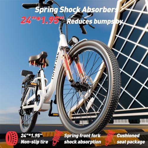 Cityscape Electric Bike for Adults 500W, 48V 20AH 60Miles Commuter Bike, 24″ Ebike Electric City Cruiser Bike for Women, 7-Speed City Bike with Extra Seat, Rear View Mirrors