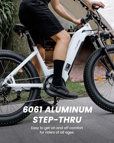 • 6061 ALUMINUM STEP-THRU-Newly upgraded 6061 aluminum frame is lighter in weight, provides better portability, good corrosion resistance and is not easy to rust.Step-Thru design is easy to get on and off the bike for riders of all ages and abilities, provides a comfortable riding position and reduces the burden on the back and hips.