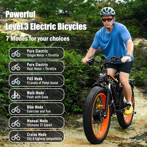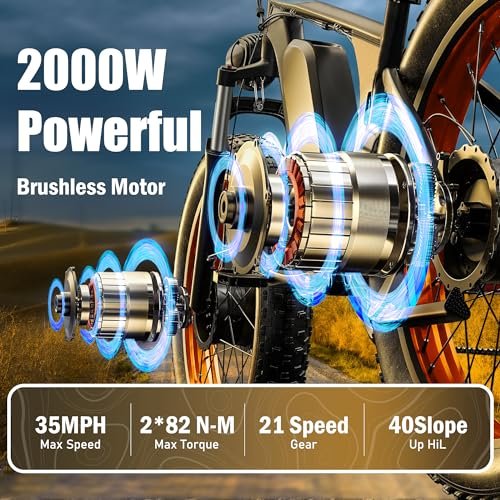 Da06 Electric Bike for Adults,Dual Motor Ebike AWD 2000W,21-Speed 35MPH Mountain Snow Ebike with Removable 52V 23AH Battery,26″ x 4.0 Fat Tire E-Bike with High-Capacity Cycling Pannier Bag