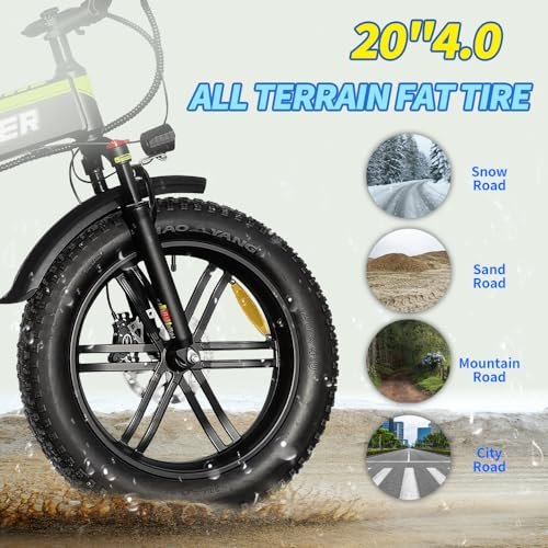 DEEPOWER H20pro Electric Bike, 1000W/2000W 20″ Fat Tire Folding Electric Bicycle, 48V 20Ah Removable High Capacity Battery, 7-Speed, Dual Shock Absorbers, Mountain EBike for Adults with USB Port