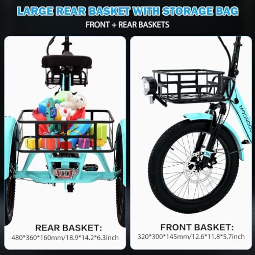 DoCred Electric Tricycle for Adults, 500W 48V Folding Electric Trike, 3 Wheels Electric Bicycle, Aluminum Frame Electric Tricycle with Large Basket and Removable Battery for Women Men