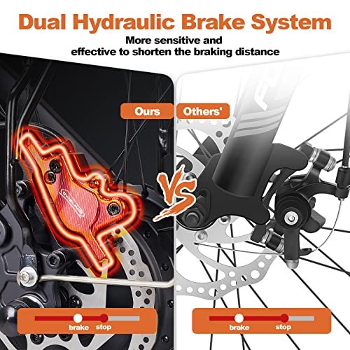 ???????????????????????????? ???????????????????????????????????? ???????????????? ???????????????????????? & ????-???????????????????? : Stay in control at all times with front and rear hydraulic disc brakes. These brakes provide this electric mountain bike powerful, responsive stopping power, ensuring your safety on any terrain or in any weather condition. The professional 7-speed gear system offers smooth and precise shifting, allowing you to optimize your pedaling effort and conquer various terrains with ease