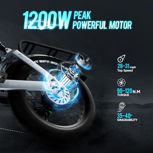 • 【⚡⚡Peak 1200W Powerful Motor⚡⚡】 ➤The high-speed rear wheel and high-performance controller can make eAhora Juliet 1000W mountain ebike reach a smooth speed of 31+ MPH. Let’s feel the thrill of speed and acceleration together. ➤The maximum torque of eAhora Juliet electric bike has 120 N.m, easily conquering 35-40 degree slopes and rough roads. ➤Multiple operating modes allow for an excellent riding experience on snow, beach, mountain, and city roads.
