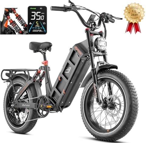 eAhora Juliet III/Juliet II/Juliet 2000W/1500W/1000W Electric Bike for Adults, 52V/48V 60Ah 100+Miles Long Range Ebike 20″ Fat Tire Full Suspension Electric Bycicle with UL2849 Certified