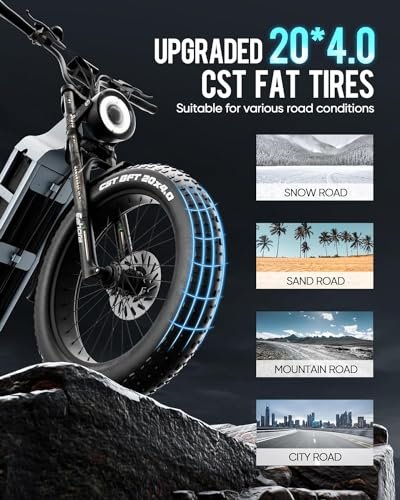 eAhora Juliet[2024 Upgraded] 48V 60Ah Peak 1200W Electric Bike for Adults 100-200Miles Long Range Electric Bicycles,20 * 4.0 Fat Tire EBike Full Suspension Electric Bicycles with Display