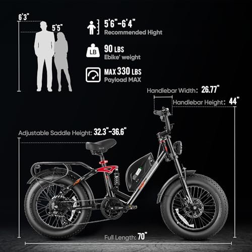 eAhora Luna&Terra Electric Bike for Adults 1500W 2000W Peak 20″×4.0″ Fat Tire Electric Bicycle Max Speed 33mph 7 Speed 15A/20A Ebike Full Suspension Dual Motor