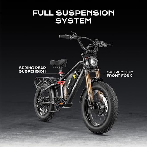 eAhora Terra Ⅱ Dual Motors Peak 2000W Electric Bike for Adults, 30+MPH 48V20A Battery, 20″*4.0 Fat Tire Mountain Electric Bicycle,7 Speed Dual Hydraulic Brakes Full Suspension Electric Bike