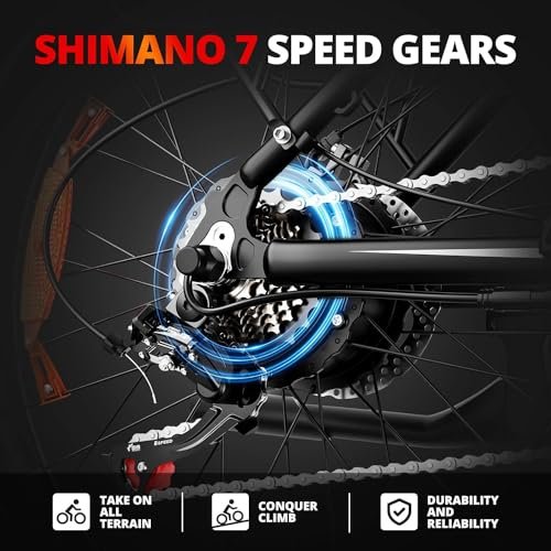 • 【7-Speed Gears】Professional 7-speed gearing system EB26 electric bike will satisfy all your speed needs for any terrain. A user-friendly shifting mechanism makes it easy to find the right gear.
