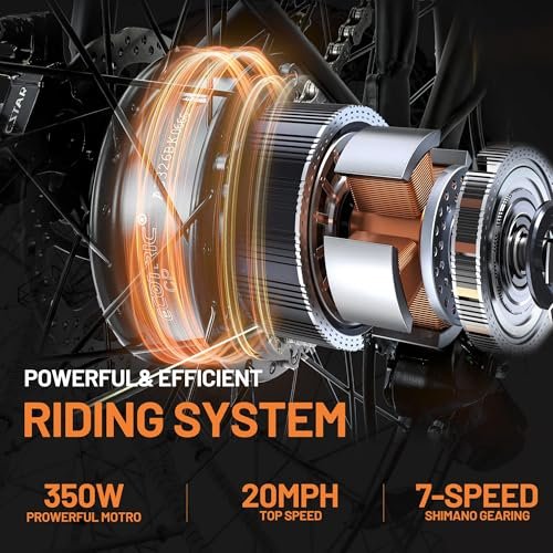 ECOTRIC Citycruiser Electric Bike 26″ E Bike 350W Motor Bicycles Removable 36V 10AH Lithium Battery Commute Step-Through Ebike Moped for Adults with Basket Shimano 7 Speed Gears