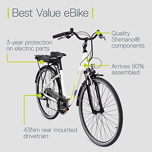 Electric Bike, Delta Cycle rDrive Ebike – 396Wh Lithium-Ion Battery, 55 Miles On A Single Charge – 7 Speed Shimano Gear System, Front & Rear V-Brakes – Safety Lights, Storage Rack & Kickstand