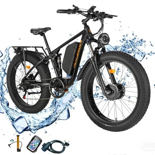Electric Bike for Adult, NEXUSRIDER 2000W Dual Motor 35 MPH 48V 22.4Ah 7 Speed AWD Ebike, Electric Mountain Bicycle with 26″ Fat Tire MTB,Dual Hydraulic Disc Brakes Full Suspension
