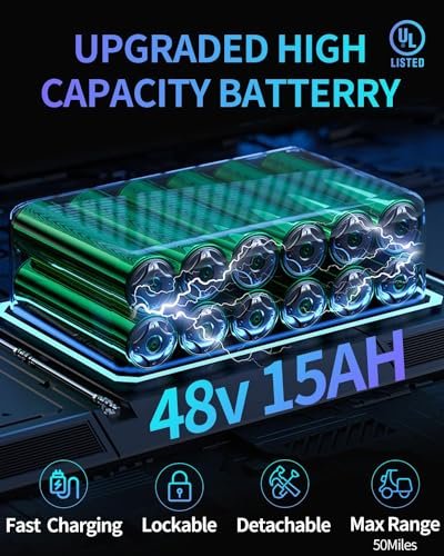 • 3 Riding Modes & Long Distance: The electric dirt bike for adults offers three riding modes: pure electric, electric assist, and pedal. It features a removable 48V 15AH lithium-ion battery, providing a range of up to 25 miles in pure electric mode and up to 50 miles in pedal assist mode. The UL certified battery incorporates BMS security protection and power-saving capabilities. With a fast charging time of 4-6 hours at 3A, you can quickly get back on the road.