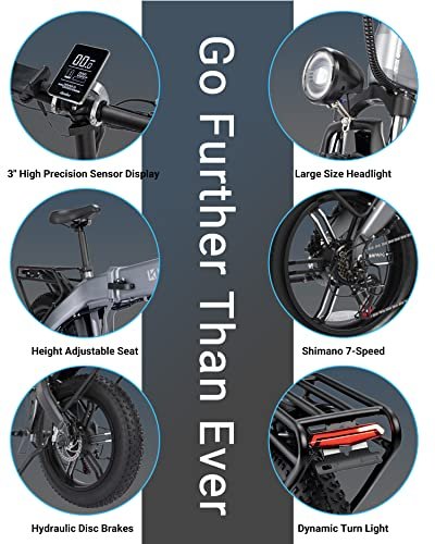 • [Hydraulic Dual Brakes & Shock Absorber]- Our e bikes for adults electric are built with a 6061 aluminum frame and integrated alloy wheel, which can withstand greater weight and shock. Hydraulic dual brakes system shortens the average 50% of braking distance than mechanical brakes, providing a safer ride. The adjustable front suspension fork greatly reduces unnecessary bumps during riding. In addition, Large Size LED lights and dynamic turn signals make your riding safer at night.