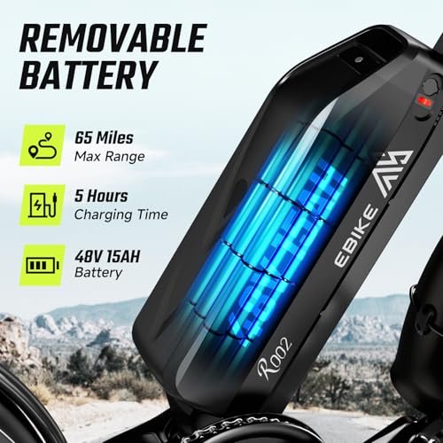• 【 48V 15AH Removable Battery,Only need 5 hours for Full Charge】TST Classic off road ebike fully charged only 5hrs, up to 65 miles long range in pedal assist mode. (Note: the range varies depending on different road conditions, riding modes, rider weight.) 48V 15AH Removable Battery with 54V/3A charger input for quick charge