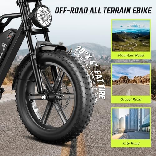 • 【TST Classic Off Road Ebike for Different Terrains & Weather】20 “x 4” puncture-proof fat tires provide stable grip to easily cope with all kinds of complex terrain. Meanwhile the dual hydraulic brakes providing a faster braking time and stronger braking force to ensure your safety even in bad weather and road conditions. Adjust the 7 speed shifting system to your riding scenario