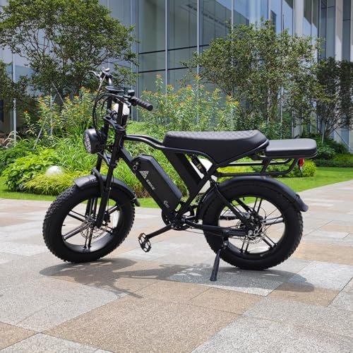 • 【 Hydraulic Disc Brakes & Dual Suspension System】Fat Tire Off-Road Ebike uses oil hydraulic disc brakes to provide ample braking power even in the tough conditions. hydraulic disc brakes have shorter braking distance and more sensitive reaction speed.The electric bike adopts lockable and adjustable fork suspension and rear suspension, which greatly reduces the bumps during riding, and the riding experience is smoother, avoiding injuries and rollovers
