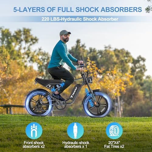 • Trafly Electric Bike for Adults, 1500W Motor Electric bike, Top Speed 30Mph & 75-Mile Long Range, 20-Inch Fat Tire Mountain Electric Bicycle, Commuting E-bike Adults with ACC Cruise