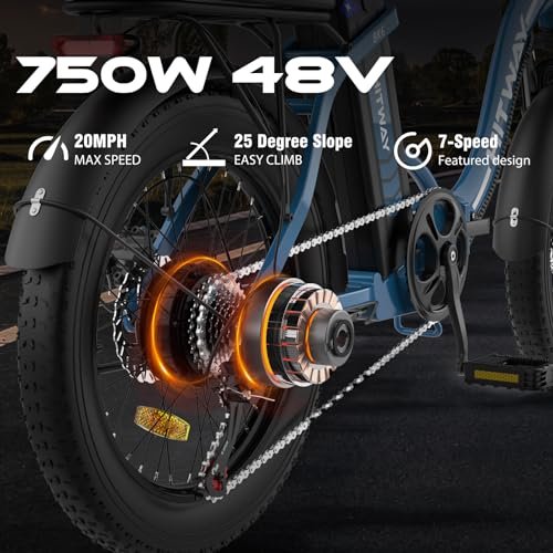 Electric Bike for Adults, 20″ Fat Tire E Bike 750W 20MPH Removable Folding Electric Bike, 48V/14Ah Battery 55-120KM,All Terrain tire Electric Bicycles