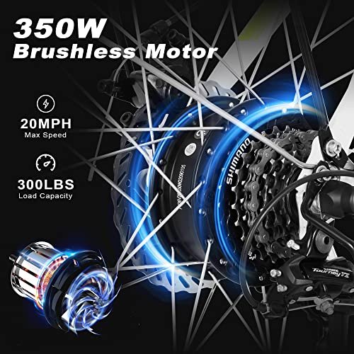 Electric Bike for Adults, 26″ ebike Certified by UL, Rohs TüV, 7 Speed Gears, with 350W Motor, 20MPH Electric Bicycle, Snow Beach Mountain E-Bike (LCD-WhiteGreen)