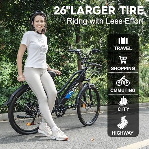 Electric Bike for Adults, 30 mph City Ebikes for Adults with Basket, 750W 1200W Peak Ebikes for Women 7 Speed, Adult Electric Bicycle with 48V 10.5Ah Removable Battery 26″ Mountain E Bike