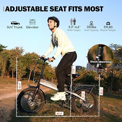 Electric Bike for Adults 750W Motor(Peak 1000W),50Miles 22Mph Top Speed, 20″ Fat Tire Folding Electric Bicycle, 48V 10Ah Removable Battery Ebike with 35 Speed and Front Suspension,Speedy