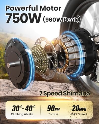 Electric Bike for Adults 960W, 48V 20AH Battery Adult Electric Bicycles, 26″ Fat Tire Full Suspension Step-Thru Ebike, 28MPH Mountain Ebike, 7 Speed, 80Miles Range, UL Certified-Boxer ST