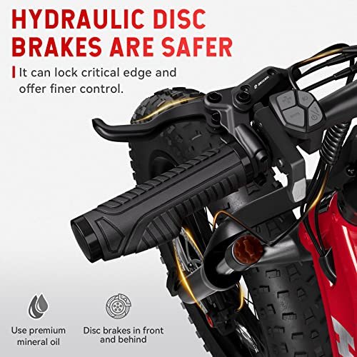 Electric Bike for Adults, HOVSCO Foldable 20” Fat Tire Ebike 750W Motor Torque Sensor 28Mph Bike, 48V 15AH LG Battery 65 Miles Adult Bicycle with Shimano 7-Speed, Dual Shock Absorber, Red