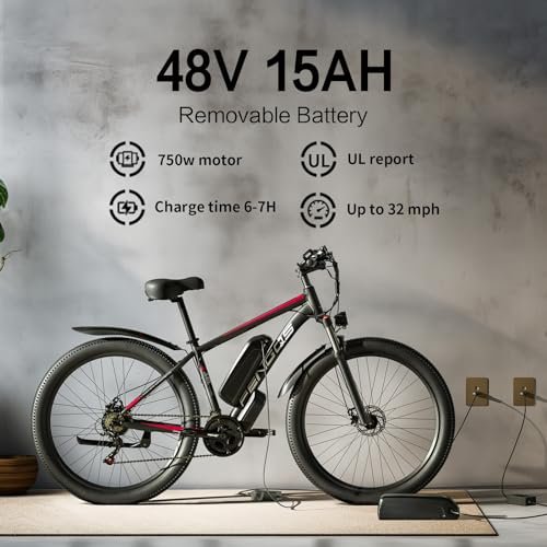 Electric Bike for Adults,750W Brushless Motor,21 Speed Gear,32MPH 55 Miles Ebike,48V15Ah Removable Battery Electric Mountain Bike,Commuting E Bike with Fork Suspension