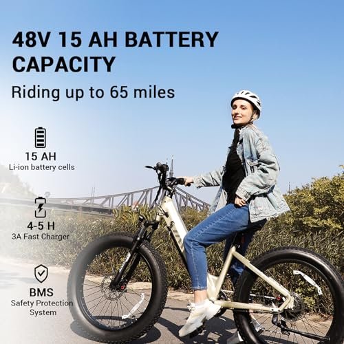 Electric Bike for Adults,Fat Tire Electric Bike,Commuter Ebike,Peak 1300W,48V 15Ah Removable Battery, 60Miles Range 28Mph 7-Speed Gear,Beach Electric Bike for Women