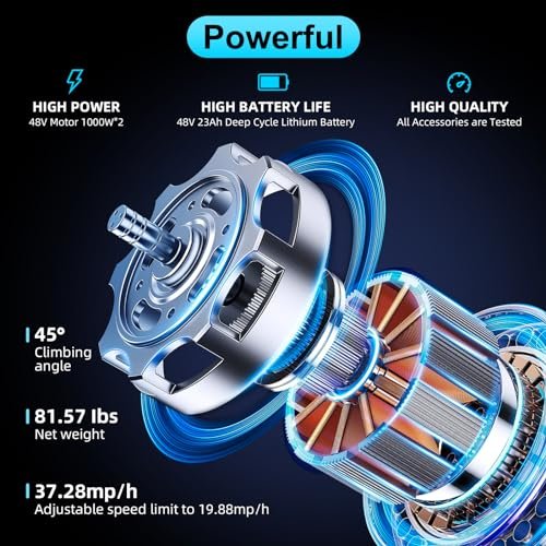 • High Performance – Our adult electric bike has 1000W*2 motor and 48V 23Ah battery. This allows riders to travel up to 60 miles on a single charge, with peak power of up to 2000W at full throttle. Top speed is 37.28 mph.