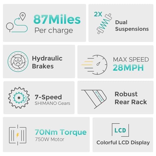ENGWE E26 Electric Bike 26″ x 4.0 Fat Tire Electric Bicycle,87Miles Electric Mountain Bike with 750W Brushless Motor ,30MPH Ebikes for Adults with Lithium-Ion Battery,7 Speed