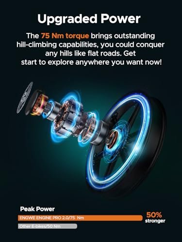【Powerful 1200W Peak Motor & Advanced Torque Sensor】: The ENGWE Engine Pro 2.0 e-bike, with its 1200W peak motor, delivers impressive power for all your riding needs. The 75N.m torque sensor ensures precise and responsive power delivery, enhancing your ride with smooth and efficient acceleration, whether you’re on a motorized bicycle, electric bike, or hunting ebike.