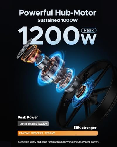 ENGWE X26 Fat Tire Electric Bike, 1200W(Peak) Motor Ebike for Adults,95 Miles 31MPH 26” Mountain Ebike,48V19.2A(29.2Ah-Dual Battery Option),All Terrain