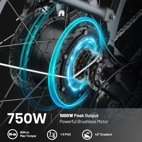 Favoto Fat Tire Electric Bike – 750W 48V14Ah Ebikes for Adults 26″Electric Bicycle 60Miles Range 20mph 5 PAS 7 Speed LCD Display Mountain Off-Road Electric Bicycle