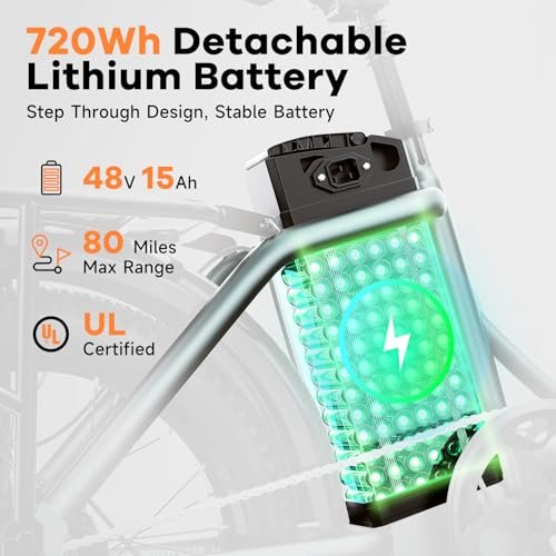 Folding Electric Bike for Adults with Peak 1000W Motor, 48V 15Ah Large Battery up to 30MPH 80 Miles, 20″ Fat Tire All Terrain Ebike, Front Suspension 7-Speed Commuter E Bike, Step-Thru, UL Certified