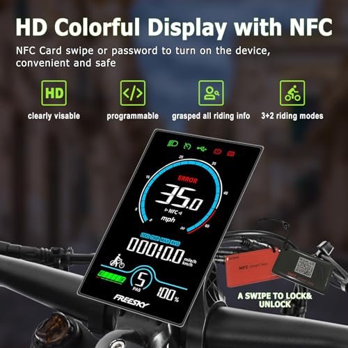 【HD Colorful Display & Up to Date NFC System】:Upgrade display can be clearly visible in the outdoor sunlight and the rider can activate the bike by swiping the key card( A SWIPE TO LOCK& UNLOCK) or entering password, more convenient and safer; You can also use the Type C charging port under the dispaly to charge your mobile phone at any time, making your travel more convenient